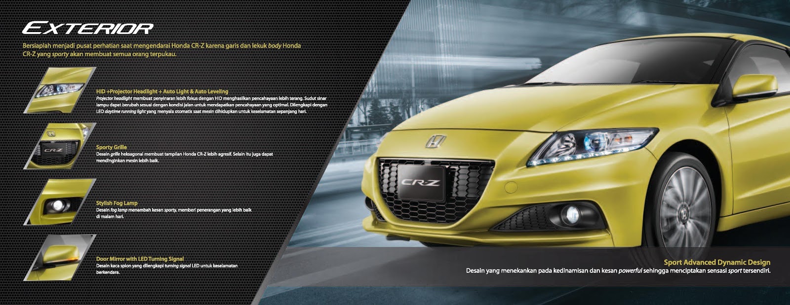 Honda Kudus Jaya – Comes with new aggressive exterior design and the impressive balance between sporty handling and driving comfort, New Honda CR-Z is ready to make you the center of attention.